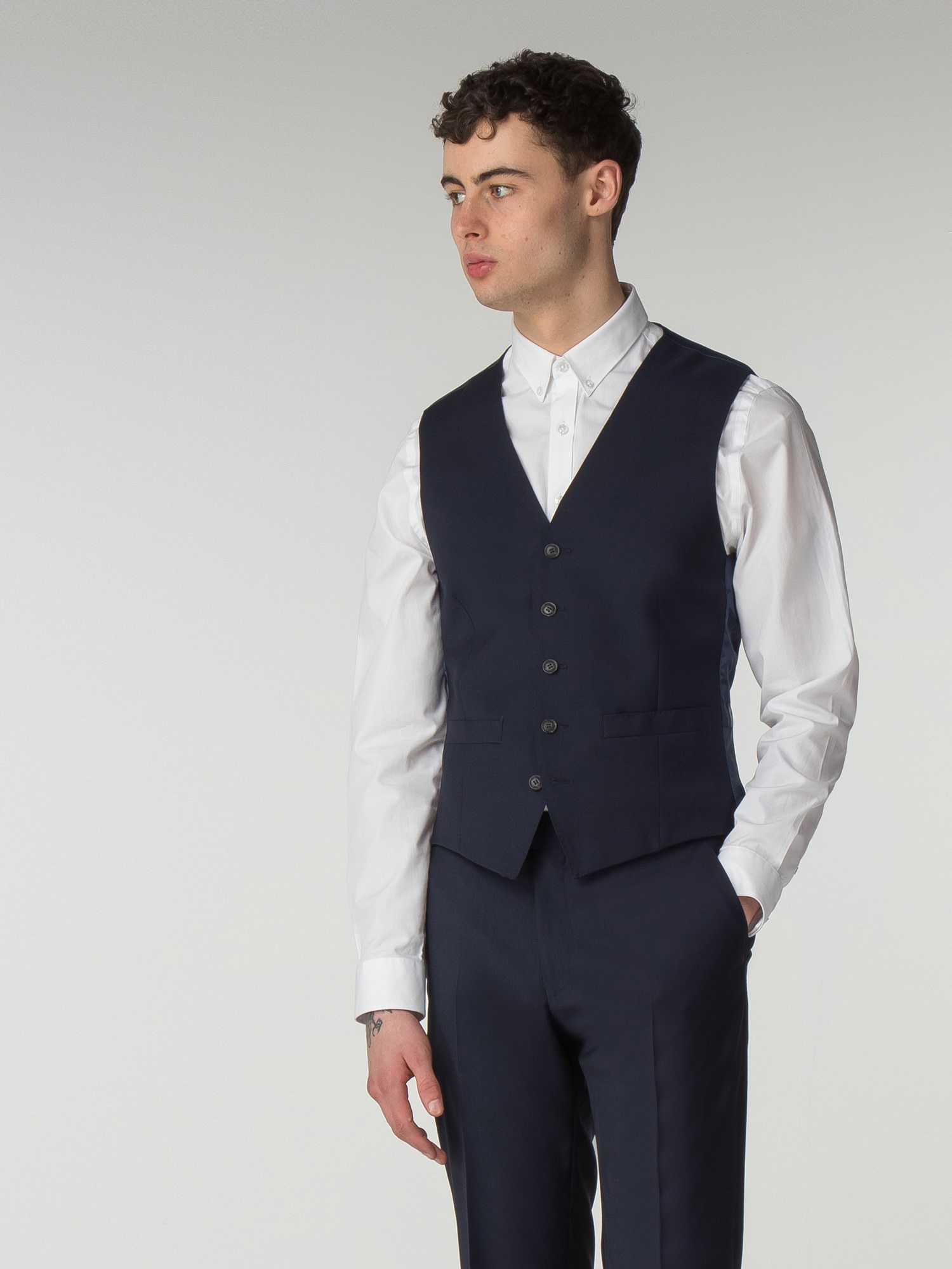 Our Ben Sherman tailoring is crafted on the modern Camden Fit block; a sharp, slim cut with slim lapels and soft sloped shoulders for a mod silhouette. This blue depths tonic 3-piece suit jacket has two buttons at front, one chest welted pocket and two jetted pockets with flaps. Inspired and considered suit details give a subtle nod to brand heritage. Epitomise smart tailoring and wear with a button-down oxford shirt. For relaxed, easy menswear wear with a tee and trainers and capsulise the collection by styling out with pieces from across the range.