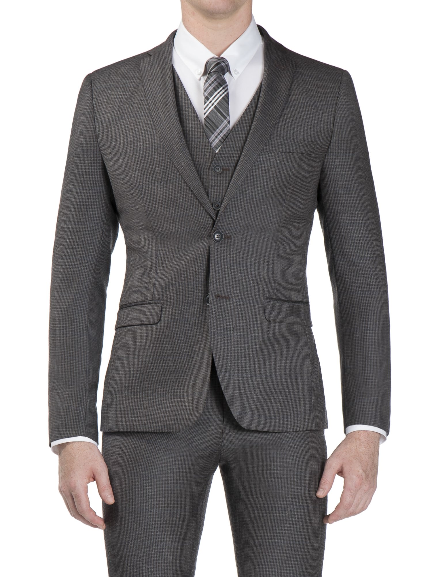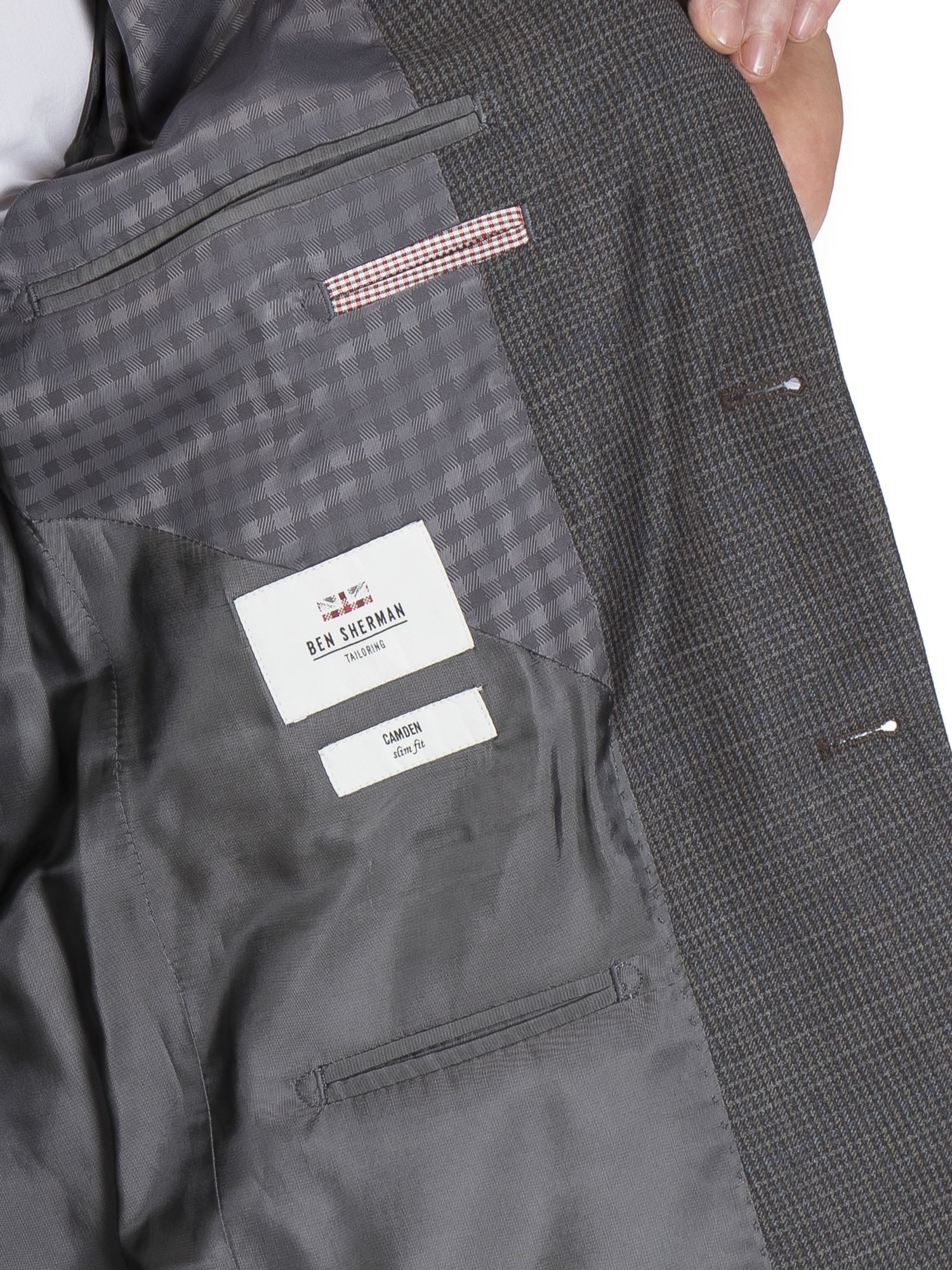 Our Ben Sherman collection is crafted on the modern Camden Fit block, ensuring a classic slim fitting suit with clean lines. This pure new wool brown puppytooth three piece, features a two button fastening jacket with slim notch lapels. The internals are sophisticated, featuring Ben Sherman’s trademark house gingham.