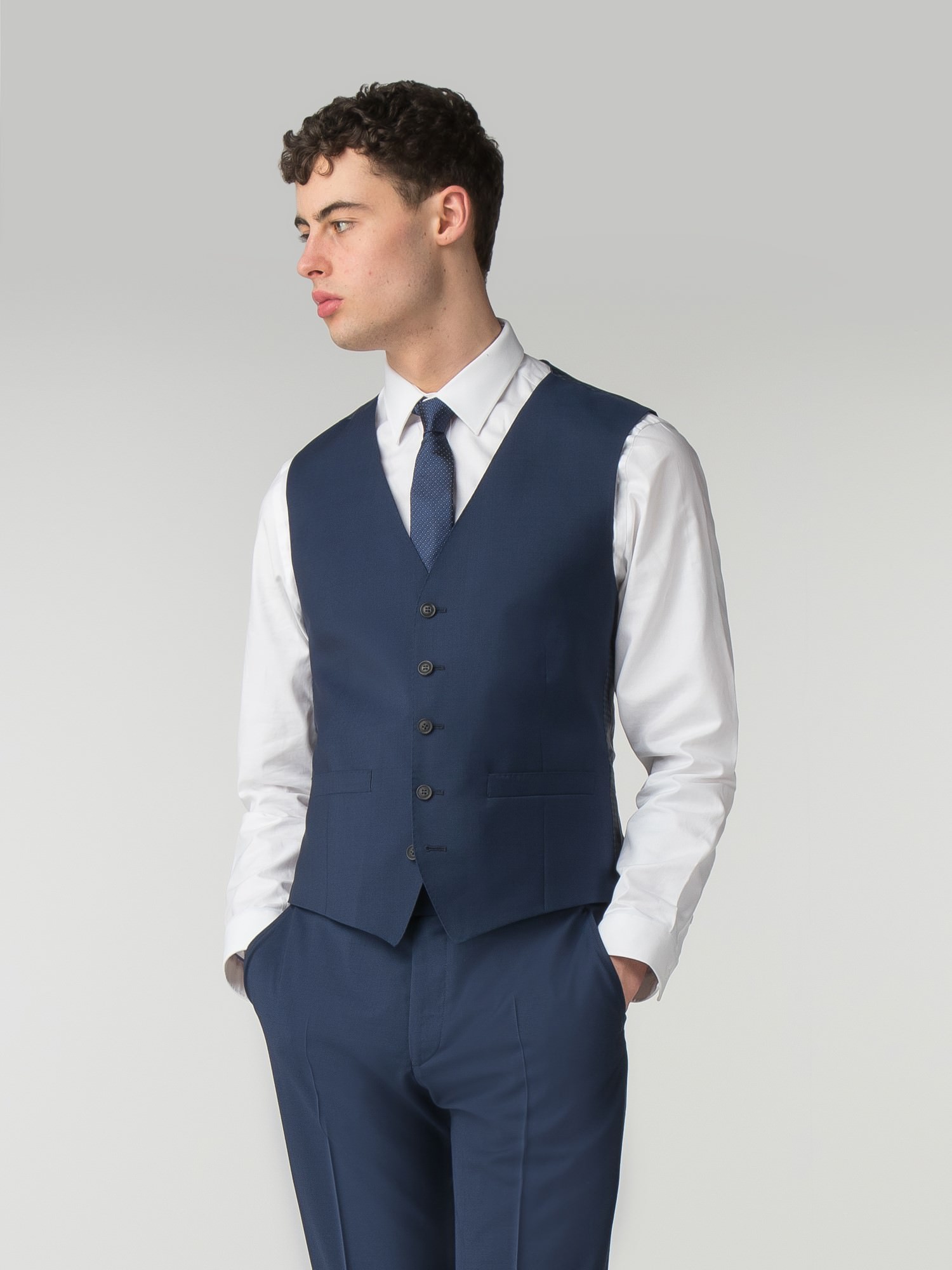 Our Ben Sherman tailoring is crafted on the modern Camden Fit block; a sharp, slim cut with slim lapels and soft sloped shoulders for a mod silhouette. This deep blue tonic 3-piece suit jacket has two buttons at front, one chest welted pocket and two jetted pockets with flaps. Inspired and considered suit details give a subtle nod to brand heritage. Epitomise smart tailoring and wear with a button-down oxford shirt. For relaxed, easy menswear wear with a tee and trainers and capsulise the collection by styling out with pieces from across the range.