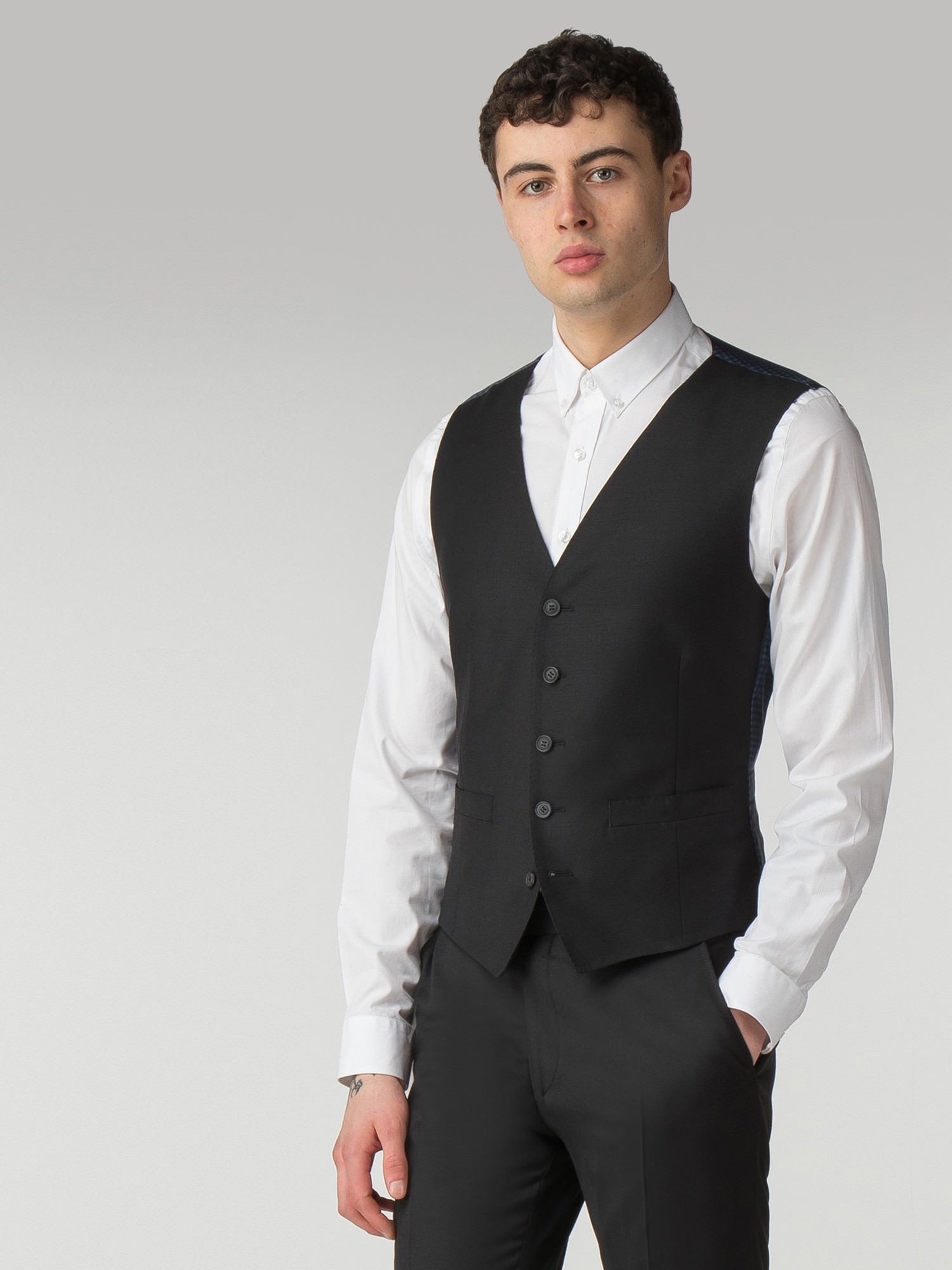 Our Ben Sherman tailoring is crafted on the modern Camden Fit block; a sharp, slim cut with slim lapels and soft sloped shoulders for a mod silhouette. This black twill 3-piece suit jacket has two buttons at front, one chest welted pocket and two jetted pockets with flaps. Inspired and considered suit details give a subtle nod to brand heritage. Epitomise smart tailoring and wear with a button-down oxford shirt. For relaxed, easy menswear wear with a tee and trainers and capsulise the collection by styling out with pieces from across the range.